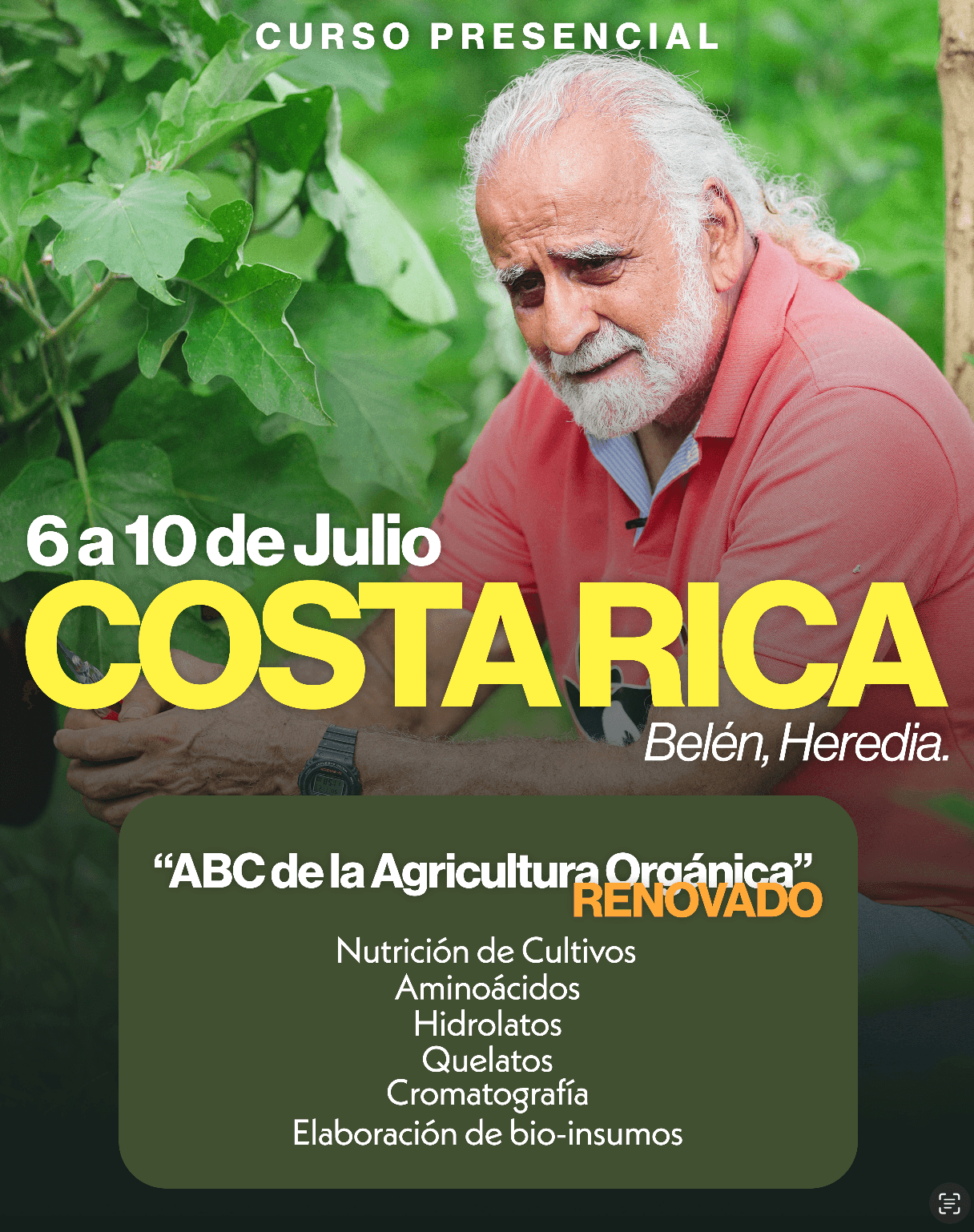 Hablaremos de nutrición de cultivos con manejo de aminoácidos, hidrolatos y quelatos 🌱 Además de todos nuestras preparaciones de bio-insumos 💚 Aprenderemos sobre análisis cromatografico de suelos y montaje de bio-factorías ✨ Con énfasis en el aprovechamiento de recursos localmente disponibles. 📆Fecha: 6 al 10 de julio 2026 📍 Lugar: Belén, Heredia, Costa Rica 📲 […]